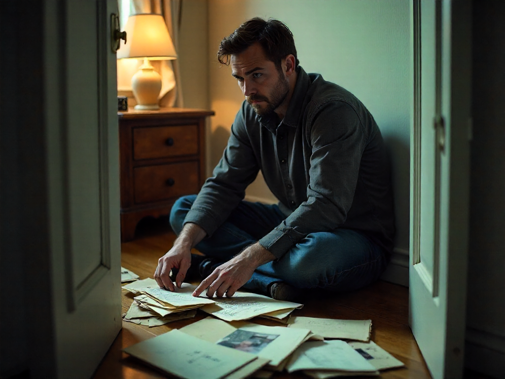 I shove open the bedroom door. He sits on the floor in a compromized circle of unopened mail and sobbing tissues, eyes raw. There are more envelopes in the box—old bills, photographs from before we had kids, a child’s birthday card from Tom’s mother with “come stay” scrawled across it. He says he panicked, that he couldn’t choose between his mother and me, so he tried to hold both. He thought proximity would heal things. He didn’t ask. He chose for both of us.