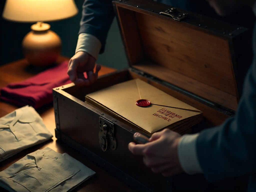 Heart pounding, I eased the tape away. The chest thunked open. Beneath shirts and a stack of tax receipts lay a heavy envelope stamped with our name. My name. My hands didn’t dare open it. Instead I photographed the seal, sent the images to the lawyer, and then, for the first time, I dialed Elaine, not to plead but to tell her what she had done: she had better have answers.